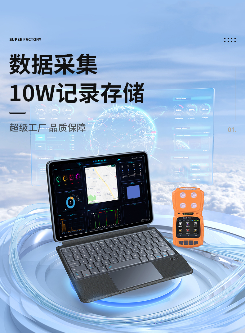 標(biāo)配10萬(wàn)條數(shù)據(jù)存儲(chǔ)容量,更大容量可訂制;支持實(shí)時(shí)存儲(chǔ)、定時(shí)存儲(chǔ),或只存報(bào)警濃度數(shù)據(jù)和時(shí)間;